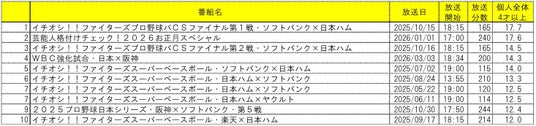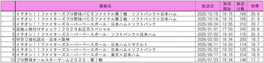さらに、レギュラーシーズンで2年連続の2位だった北海道日本ハムファイターズの中継に加え、「報道ステーション」(月~金曜よる9時54分~11時10分)などの報道番組も昨年に引き続き高視聴率を獲得しました。
