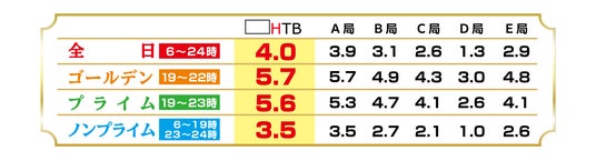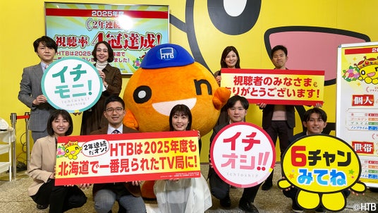 HTBは、2025年度の札幌地区視聴率において、個人全体視聴率(4才以上)は、全日・ゴールデン・プライム・ノンプライムの四冠!世帯視聴率は、全日・ゴールデン・プライムの三冠に輝きました。それぞれの部門で年度1位を獲得するのは2年連続となります。