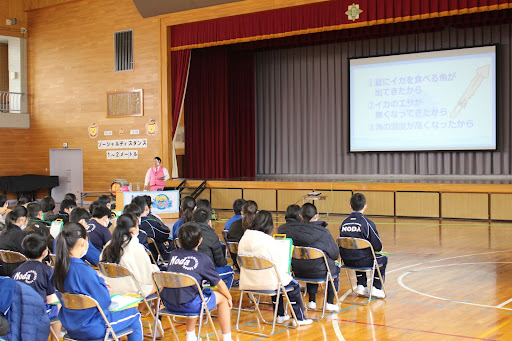 一般社団法人日本知識士協会は、海の文化・歴史・海の中の生物や環境問題など海にかかわることを楽しく学べる「海のクイズイベント」を12月9日(木)に福島市立野田小学校で開催しました。このイベントは海のことをレクチャーパート(勉強)・クイズラウンド(3択問題・早押し)で学べるプログラムです。参加した6年生120名の皆さんは真剣な眼差しでレクチャーを聞き、クイズでは生まれて初めて触る本格的な早押しボタンをドキドキしながら押していました。