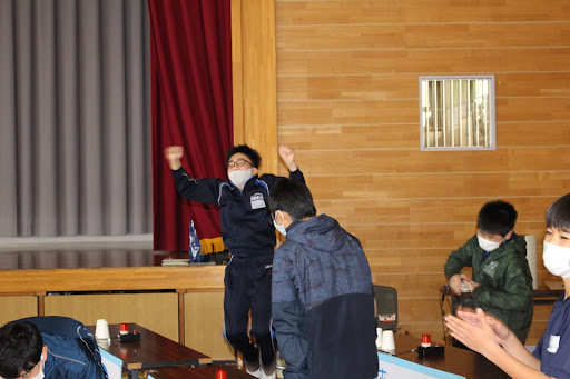 決勝ラウンドでは2人の児童が2ポイントで並びました。最後のクイズを答え優勝した児童は、正解すると飛び上がって大喜び!。会場も大盛り上がりでフィナーレを迎えました。
