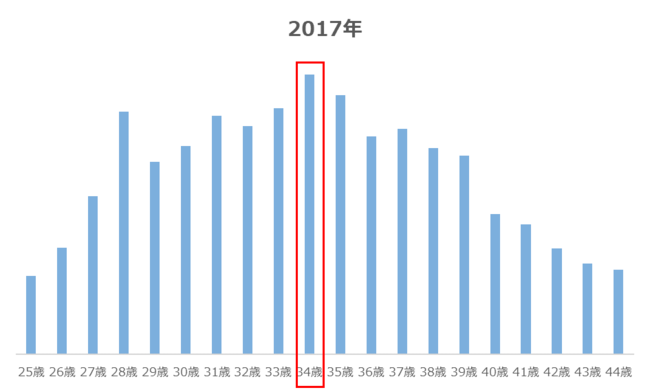また、具体的な年齢を見たところ、ご入会者数がもっとも多い年齢は2017年では34歳でしたが、2021年は29歳となり5歳の差が出る結果となりました。