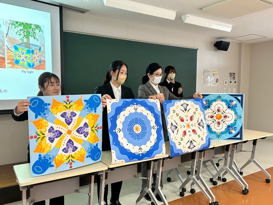本プロジェクトは2024年9月30日(月)よりスタート。佐賀大学、船場、鳥栖プレミアム・アウトレットの3者で、意見交換会(2024年11月)や、学生達のデザイン提案プレゼンテーション(2025年1月)、ワークショップ(3月)など約半年間に及ぶ制作過程を経て、学生達がデザインしたタイルアートプランター16点を完成させました。