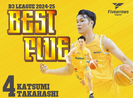 この度、「B3リーグ レギュラーシーズン 2024-25」全日程を終え、『2024-25シーズン 個人表彰およびリーダーズ』が確定し、香川ファイブアローズからは高橋克実選手が年間ベスト5に選出されましたので、お知らせいたします。