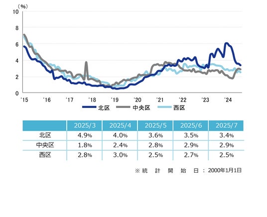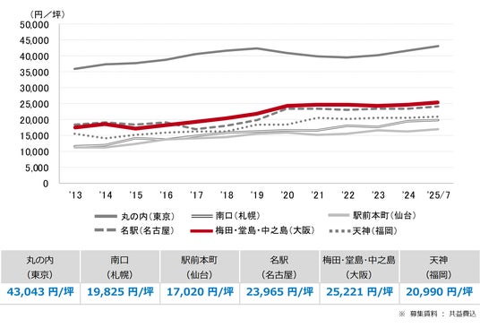 三幸エステート株式会社(本社:東京都中央区、取締役社長:福島正二郎)は、2025年7月度の大阪市オフィス賃貸状況(空室率&現空面積:大規模、募集賃料&募集面積:大規模、規模別空室率、主要3区※1空室率:大規模)および全国6大都市(東京・札幌・仙台・名古屋・大阪・福岡)の大規模ビルのマーケットデータをまとめた「オフィスマーケット2025年8月号大阪」を公表します。