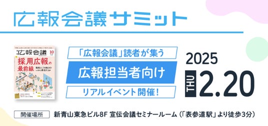 株式会社宣伝会議は、広報業界の最新トレンドや実践的な戦略を学ぶことができる「広報会議サミット2025」を2月20日(木)に、宣伝会議セミナールームにて開催いたします。