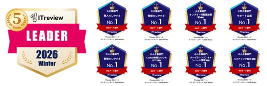 また、MAツール部門の大企業部門では3項目でNo.1を獲得(導入のしやすさ、管理のしやすさ、オフライン行動履歴管理機能)、中堅企業部門では1項目でNo.1を獲得(サポート品質)、中小企業部門では4項目でNo.1を獲得(管理のしやすさ、Cookie情報とのひも付け機能、ターゲティング、キャンペーン管理機能、スコアリング設定機能)しています。