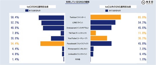 10個中7個のSNSにおいて、「toC以外」のSNS運用担当者の利用率が高くなっていました。