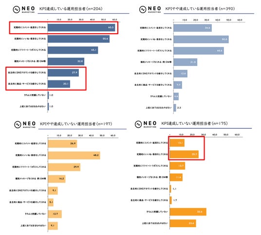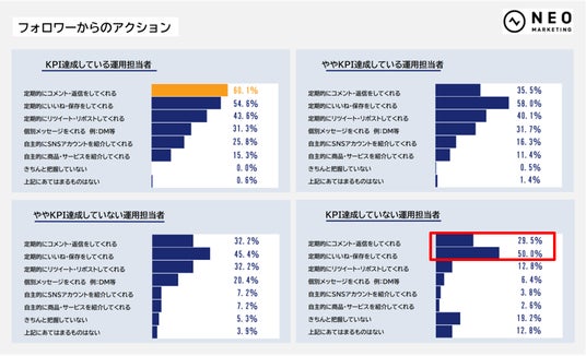 KPI達成度が高い担当者ほど、フォロワーからの“能動的なアクション”を多く引き出している実態が浮き彫りになりました。