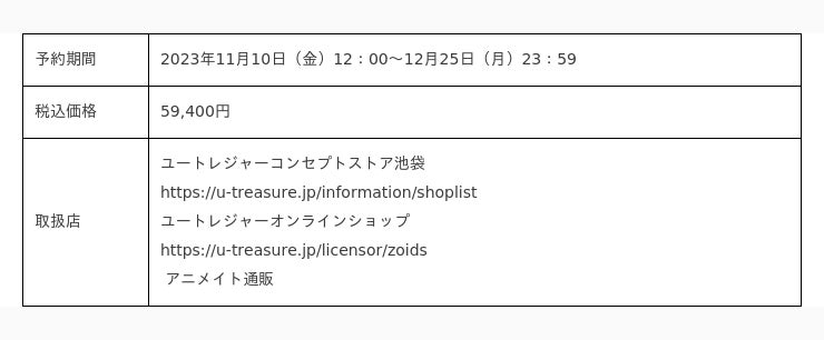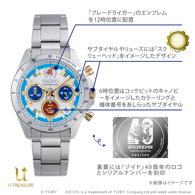 株式会社ユートレジャー(本社:東京都豊島区、代表取締役:伊藤 崇史)は、40周年を迎える『ゾイド』(発売元:タカラトミー)初となる、セイコーとコラボレーションしたクロノグラフ腕時計を限定300本、2023年11月10日(金)~12月25日(月)の期間限定で予約の受け付けを行います。