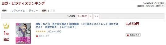 ジャンル「本/美容・暮らし・健康・料理 週間ランキング(ヨガ・ピラティス)」にて、