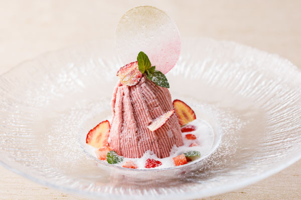 また、パスタに使用しているしらすについては、三浦漁港から直送される佐島のシラスを使い、神奈川ならではの旬の味覚を提供します。デザートはコース全体の調和を考慮した、酸味と甘味のバランスが良い苺のモンブランで、最後まで春を存分にご堪能いただけます。春の味わいをごゆっくりお楽しみください。