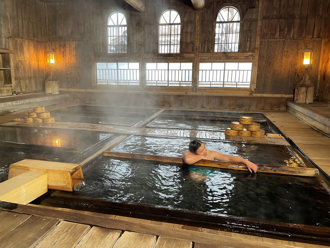 その後、明治時代の面影を残す鹿鳴館風の大浴場が素晴らしいと評判の法師乃湯でのんびり過ごすのでした。