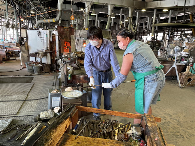スギちゃんは、温泉に入る前に吹きガラス体験をし、若鶏の蒸し焼きにかぶりつき、大満足だぜぇ。