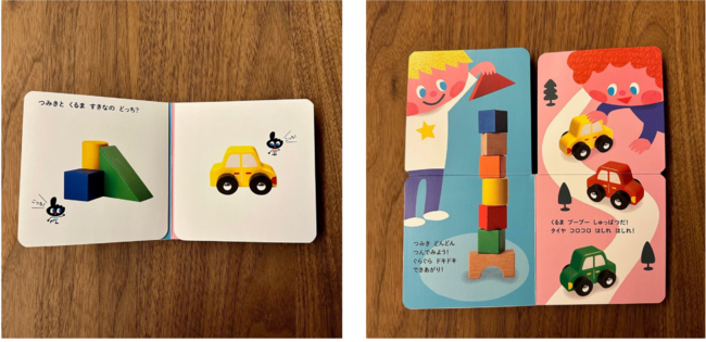 もちろん、言葉が出てきたお子さんとも同様に、「どっちかな?」とお子さんからの指さしと発語を促し、お子さん自らが物の名前を言って、親子で楽しむことができます。そして、選んだ方のページをめくると、楽しさがさらにふくらむので、お子さんの笑顔がきっと広がりますよ。