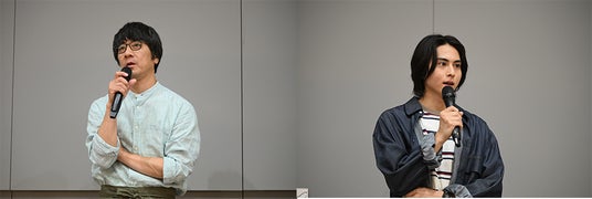 MBSドラマフィル枠にて、7月25日(木)より放送スタートのドラマ『三ツ矢先生の計画的な餌付け。』の制作発表が行われ、W主演を務める山崎まさよし、酒井大成が登壇しました。