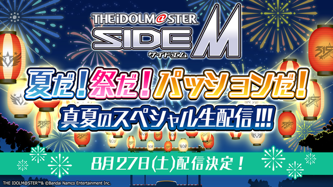 「アイドルマスター SideM 夏だ!祭だ!パッションだ!真夏のスペシャル生配信!!!」を配信予定です!