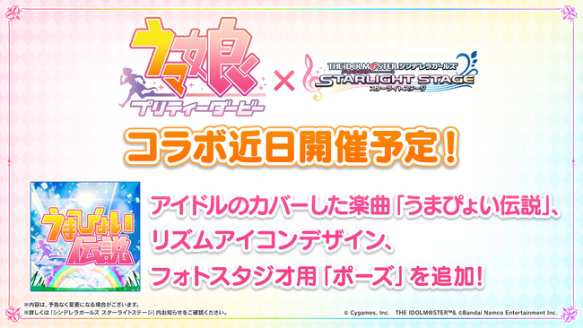 アイドルがカバーした楽曲「うまぴょい伝説」やリズムアイコンデザイン、フォトスタジオ用の「ポーズ」が追加されます!