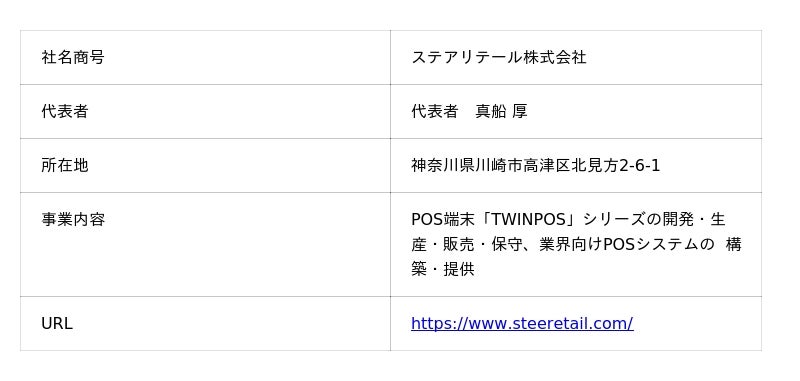 ステアリテールは、POS端末「TWINPOSシリーズ」*1の開発・生産をはじめ、外食やサービスステーション業界向けに自らPOSソリューションを構築・提供し、リテール業界のデジタルトランスフォーメーション(DX)を支える総合的なソリューションプロバイダです。
