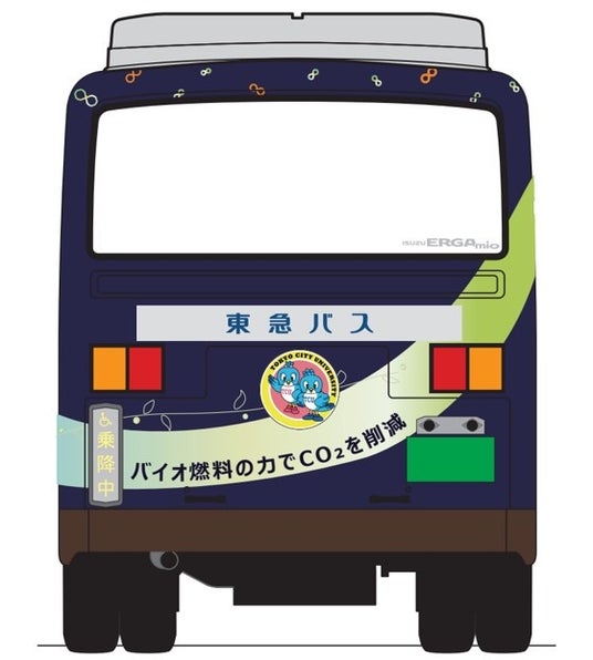 なお、バイオ燃料を活用する路線バスのうち2両に東京都市大学の学生がデザインしたラッピングが施されています(5月14日運行開始は1両のみ)。