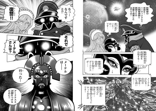 絶体絶命の危機にメーテルは新機械化帝国の指導者・ダークナスと、そして鉄郎は因縁深きガイゼルと対峙する。