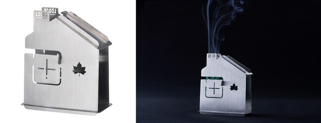 煙突あたりから煙が立ち昇るハウス型デザインの蚊取り線香ホルダー。錆に強いステンレス素材で耐久性も抜群。