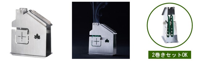 ご自宅で使用できることはもちろん、蚊取り線香を同時に2巻き取り付けられる構造により発煙量を増やすことができるので、虫が気になる夏のアウトドアシーンで大活躍します。また、時間差で点火すれば長時間の効果も期待できます。