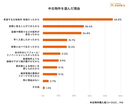 【1】中古物件を選んだ理由は「希望する立地条件・地域だったから」が45%