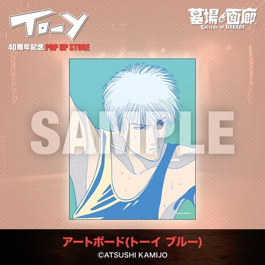 今回のPOP UP STOREでは、藤井冬威(トーイ)、ニヤ、哀川陽司、そしてGASPのメンバーたちという魅力的なキャラクターたちを、墓場の画廊ならではの独自演出で表現。作中の名場面や名台詞が目白押しの演出で、リアルタイム世代のファンはもちろん、現代の新たなファンも巻き込む『TO-Y』の世界を完全再現する。