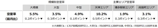 空室率 前月から低下 「天神」は0.5ポイントの大幅な低下