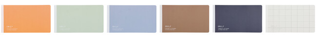 PCの前に開いて置けるスマートサイズのノートです。フラットに開ける製本のため、PC前に置いてもタイピングの妨げになりません。カラーはオレンジ、ペールグリーン、ブルーグレー、チャイロ、ネイビー、シロの6色展開で、用途や案件ごとにカラーを使い分けることもできます。