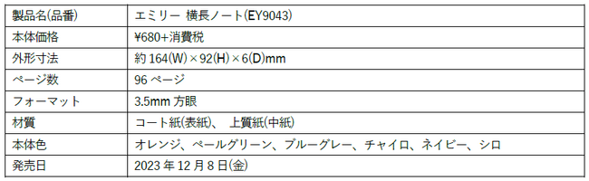 株式会社キングジム(本社:東京都千代田区 代表取締役社長:宮本 彰)は、ライフスタイルグッズ『EMILy(エミリー)』シリーズ( https://www.kingjim.co.jp/sp/EY/ )の新ラインアップとして「横長ノート」「ふせん」「ワークポーチ」を2023年12月8日(金)より発売します。初年度販売目標数量は新製品合計で61,000個です。