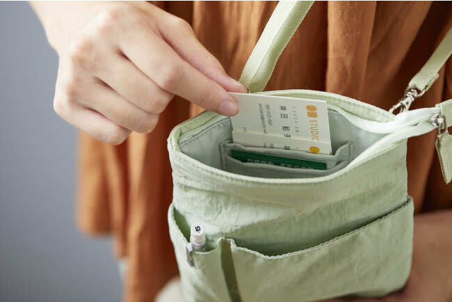ショルダー紐は背面ポケットにしまえるほか、取り外しもできます。バッグに収納したときもかさばらず、ツールポーチとしてバッグの整理に活用できます。