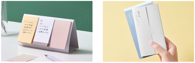 『EMILy(エミリー)』シリーズは、便利な機能とカラーが特長のライフスタイルグッズです。2021年1月の第1弾発売以降、ビジネスパーソンを中心にご好評をいただいています。今回はシリーズ第3弾として、昨今の働き方に合わせ、出社とテレワークのハイブリットワークに役立つ機能を詰め込んだ「横長ノート」「ふせん」「ワークポーチ」の3製品を発売します。カラーは差し色となるオレンジやペールグリーンのほか、ネイビーやシロなどの落ち着いたカラーを追加し、より使いやすくトレンドをおさえたデザインへリニューアルしました。