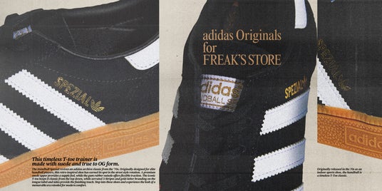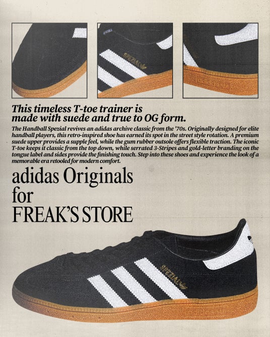 毎シーズン人気を博している、adidas OriginalsとFREAK'S STOREによる別注アイテムの新作が登場。1970年代、ハンドボールのインドアコート用にデザインされ誕生した「Handball Spezial」を、現代風にアレンジした1足を販売します。
