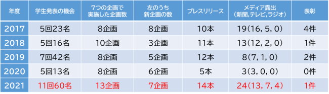 2021年度は、7つの枠組みの中で過去最多の13企画を実施しました。