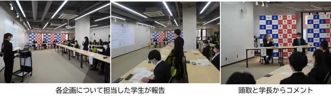 報告内容:2021年度は学生42名のプロジェクトチームを組み、オンラインと対面を組み合わせた活動で、過去最多の13企画を実施し、全体を通じて12個のSDGsの目標に寄与することができました。