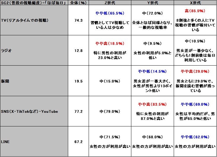 - TVをよく見るX世代が影響を受けにくくなった結果、TVの影響力が下がったのではないかと考える