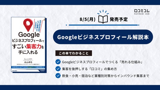 AI店舗支援SaaS「口コミコム」及び口コミ対策・ローカルSEO(MEO)専門メディア「口コミラボ」、業界最大級のインバウンドビジネスメディア「訪日ラボ」を運営する株式会社mov(代表取締役:渡邊 誠、本社:東京都渋谷区、以下mov)は、株式会社ユニットティ 代表取締役で、日本初のGoogle ビジネスプロフィール ダイアモンドプロダクトエキスパートとしても活躍する永山 卓也氏とともに、Googleビジネスプロフィール専門の解説書『Googleビジネスプロフィールですごい集客力を手に入れる』を青春出版社より8月5日から発売いたします。