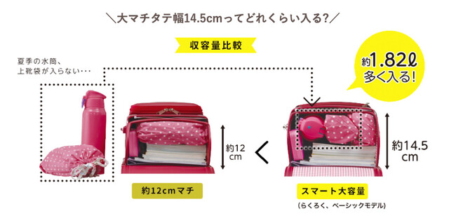 大マチ14.5cmの大容量で、水筒や袋ものも入れられる“コクヨのランドセル”