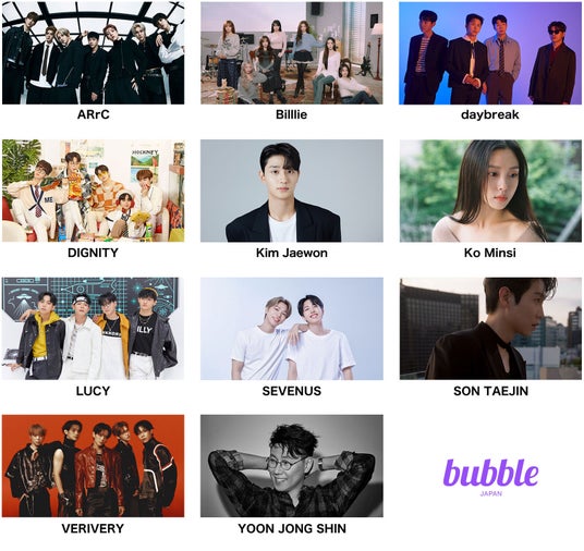 2024年6月にサービスを開始した「bubble for JAPAN」では、現在までに、Mrs. GREEN APPLE、渋谷すばる、Novelbright、MIYAVIといった音楽アーティストをはじめ、SKE48などのアイドル、矢吹奈子、藤田ニコル、かす といったタレント・モデル・声優・YouTuberまで、幅広いジャンルで利用されています。
