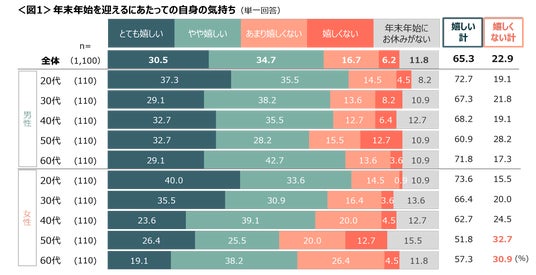 年末年始を迎えるのが「嬉しい」と回答した人は65.3%。