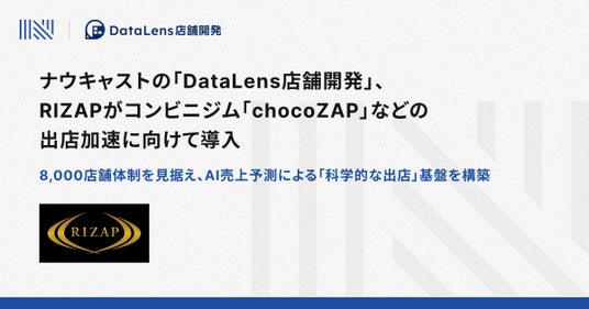 次世代金融インフラの提供を通して組込型金融を実現するFinatextグループの株式会社ナウキャスト(本社:東京都千代田区、代表取締役CEO:辻中 仁士、以下「ナウキャスト」)は、RIZAP株式会社(本社:東京都新宿区、代表取締役社長:瀬戸 健、以下「RIZAP」)に対し、店舗開発DXツール「DataLens店舗開発」の提供を開始しました。RIZAPは、コンビニジム「chocoZAP(チョコザップ)」を中心に現在約1,800店舗を展開しており、将来的には8,000店舗体制を目指しています。今回の導入により、物件情報の管理を一元化し、データに基づく高精度な売上予測を意思決定に活かします。