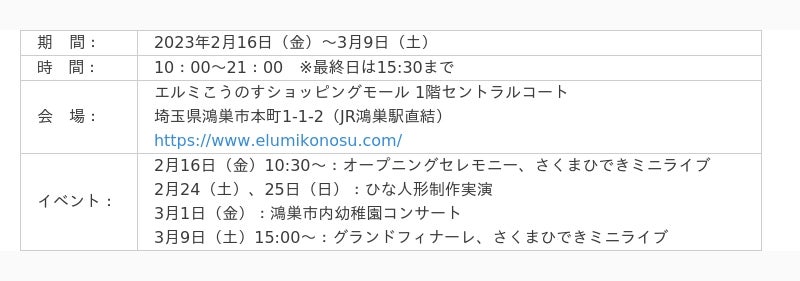 ■「鴻巣びっくりひな祭り2024おかげさまで20周年!」概要