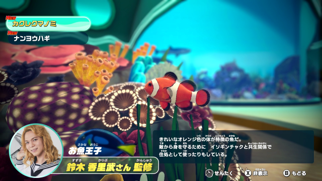 ゲーム内の魚の豆知識やクイズなど、実在する魚類の情報は、お魚王子としてメディアで活躍中の「鈴木香里武」さんに監修していただきました。