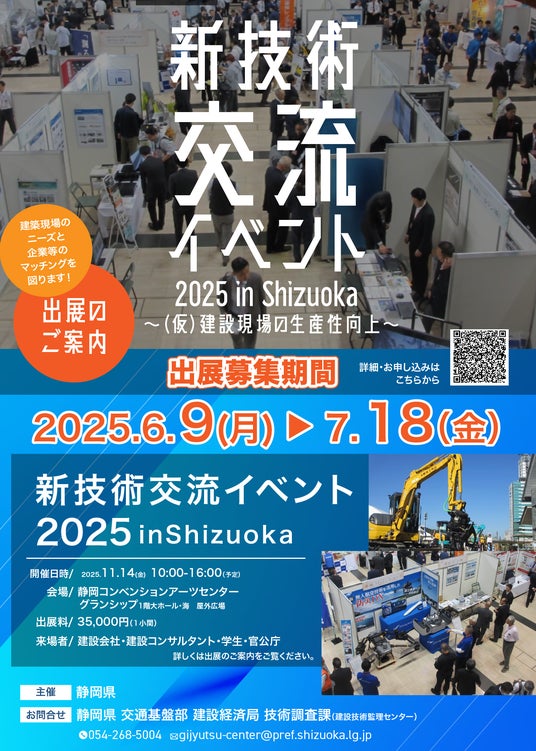 令和7年11月14日(金)、建設現場の生産性向上を推進するため、「新技術交流イベント in Shizuoka 2025」をグランシップにて開催します。