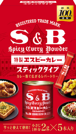 エスビー食品株式会社は、創業100年を記念する商品として、70年以上の歴史と伝統を誇る“赤缶カレー粉”をスティックタイプにした「カレー粉スティック」を新発売します。