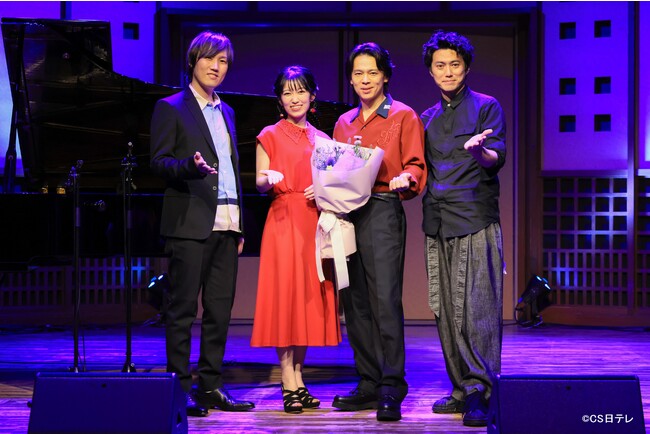 番組の中でたくさんの挑戦をしました。まずは中川さん、ピアニスト園田涼さんと一緒に一曲、私がベースを弾かせていただいたこと。中川さんとは演出家として仕事をしてきましたが、ステージで楽器を通した共演は初めてです。中川さんの音楽は彩りに充ちていて、歌声は例えようのない煌めきに溢れていました。まるで豊潤な海の中に身を任せているような、自由で、幸せな世界でした。園田さんの旋律、アレンジの素晴らしさにも是非注目していただけたらと思います。