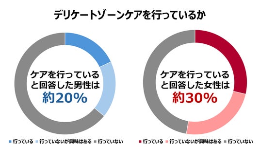 ・デリケートゾーンケアを行っている方は女性で約30%、男性で約20%