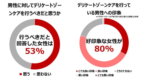 ・約半数の女性が、デリケートゾーンケアを行う男性に対して好印象を持っている!