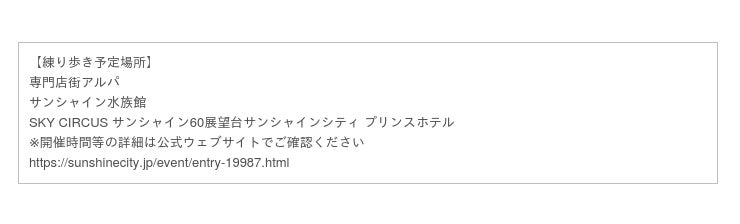 所在地:東京都豊島区東池袋3-1 サンシャインシティ ワールドインポートマートビル・屋上